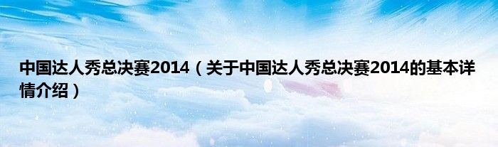 本文关于中国达人秀总决赛2014的基本详情介绍就讲解完毕,希望对大家有所帮助。