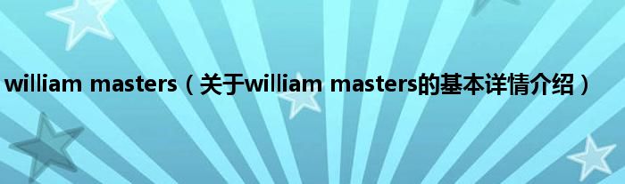 本文关于william masters的基本详情介绍就讲解完毕,希望对大家有所帮助。