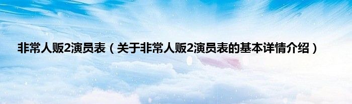 本文关于非常人贩2演员表的基本详情介绍就讲解完毕,希望对大家有所帮助。