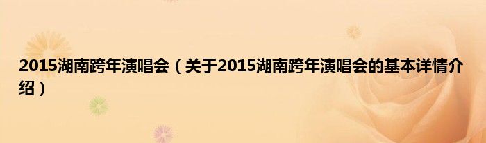 本文关于2015湖南跨年演唱会的基本详情介绍就讲解完毕,希望对大家有所帮助。
