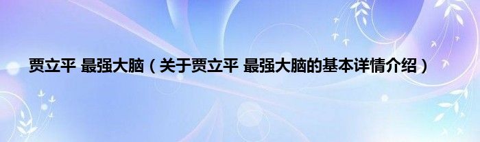 本文关于贾立平 最强大脑的基本详情介绍就讲解完毕,希望对大家有所帮助。