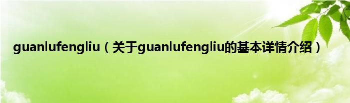 本文关于guanlufengliu的基本详情介绍就讲解完毕,希望对大家有所帮助。