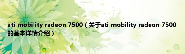 本文关于ati mobility radeon 7500的基本详情介绍就讲解完毕,希望对大家有所帮助。