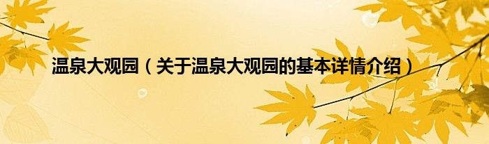 本文关于温泉大观园的基本详情介绍就讲解完毕,希望对大家有所帮助。