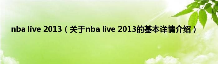 本文关于nba live 2013的基本详情介绍就讲解完毕,希望对大家有所帮助。