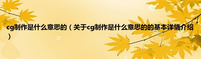 本文关于cg制作是什么意思的的基本详情介绍就讲解完毕,希望对大家有所帮助。