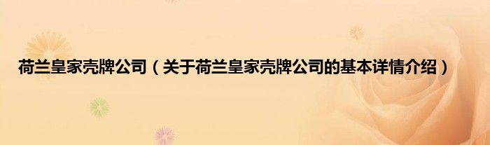 本文关于荷兰皇家壳牌公司的基本详情介绍就讲解完毕,希望对大家有所帮助。