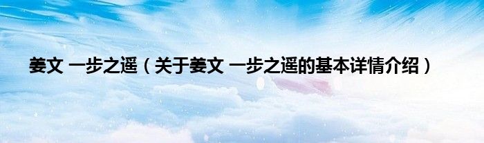 本文关于姜文 一步之遥的基本详情介绍就讲解完毕,希望对大家有所帮助。