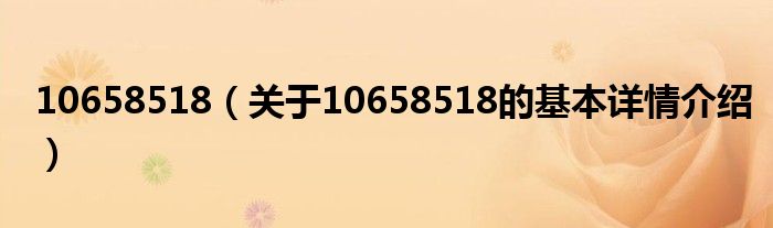 本文关于10658518的基本详情介绍就讲解完毕,希望对大家有所帮助。