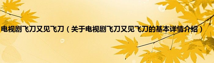 本文关于电视剧飞刀又见飞刀的基本详情介绍就讲解完毕,希望对大家有所帮助。