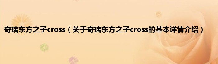 本文关于奇瑞东方之子cross的基本详情介绍就讲解完毕,希望对大家有所帮助。