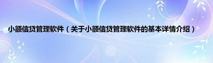 本文关于小额信贷管理软件的基本详情介绍就讲解完毕,希望对大家有所帮助。