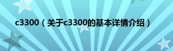 本文关于c3300的基本详情介绍就讲解完毕,希望对大家有所帮助。