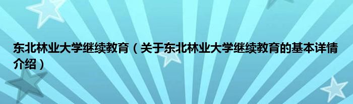 本文关于东北林业大学继续教育的基本详情介绍就讲解完毕,希望对大家有所帮助。