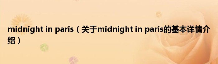 本文关于midnight in paris的基本详情介绍就讲解完毕,希望对大家有所帮助。