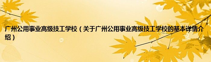 本文关于广州公用事业高级技工学校的基本详情介绍就讲解完毕,希望对大家有所帮助。