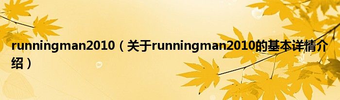 本文关于runningman2010的基本详情介绍就讲解完毕,希望对大家有所帮助。