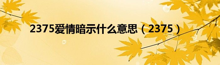 以上就是【2375爱情暗示什么意思,2375】相关内容。