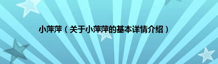 本文关于小萍萍的基本详情介绍就讲解完毕,希望对大家有所帮助。