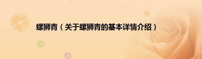 本文关于螺狮青的基本详情介绍就讲解完毕,希望对大家有所帮助。