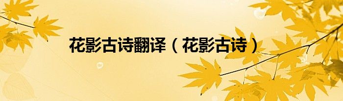 大家好,小问来为大家解答以上问题。花影古诗翻译,花影古诗这个很多人还不知道,现在让我们一起来看看吧!