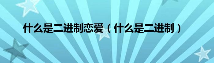 大家好,小问来为大家解答以上问题。什么是二进制恋爱,什么是二进制这个很多人还不知道,现在让我们一起来看看吧!