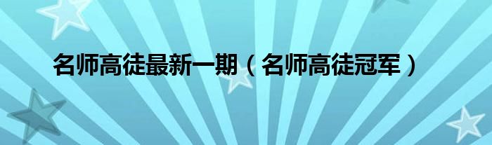 以上就是【名师高徒最新一期,名师高徒冠军】相关内容。