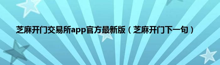 大家好,小问来为大家解答以上问题。芝麻开门交易所app官方最新版,芝麻开门下一句这个很多人还不知道,现在让我们一起来看看吧!