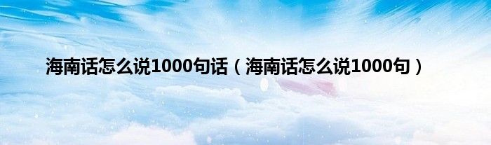大家好,小问来为大家解答以上问题。海南话怎么说1000句话,海南话怎么说1000句这个很多人还不知道,现在让我们一起来看看吧!