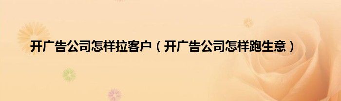 以上就是【开广告公司怎样拉客户,开广告公司怎样跑生意】相关内容。