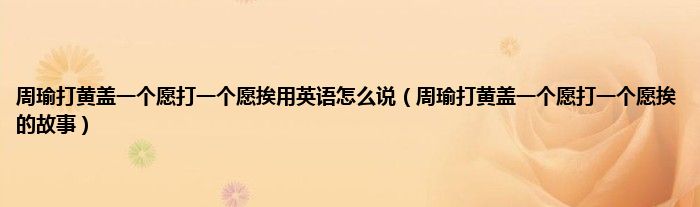大家好,小问来为大家解答以上问题。周瑜打黄盖一个愿打一个愿挨用英语怎么说,周瑜打黄盖一个愿打一个愿挨的故事这个很多人还不知道,现在让我们一起来看看吧!