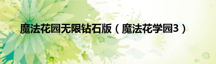大家好,小问来为大家解答以上问题。魔法花园无限钻石版,魔法花学园3这个很多人还不知道,现在让我们一起来看看吧!