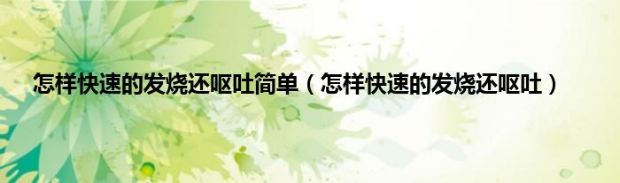 以上就是【怎样快速的发烧还呕吐简单,怎样快速的发烧还呕吐】相关内容。