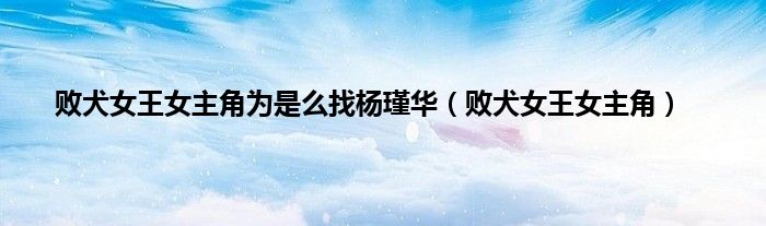 大家好,小问来为大家解答以上问题。败犬女王女主角为是么找杨瑾华,败犬女王女主角这个很多人还不知道,现在让我们一起来看看吧!