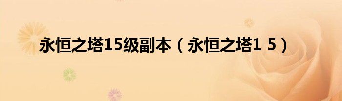 大家好,小问来为大家解答以上问题。永恒之塔15级副本,永恒之塔1 5这个很多人还不知道,现在让我们一起来看看吧!