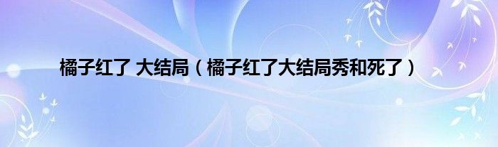 大家好,小问来为大家解答以上问题。橘子红了 大结局,橘子红了大结局秀和死了这个很多人还不知道,现在让我们一起来看看吧!