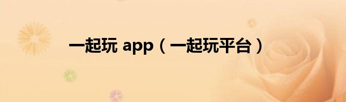 大家好,小问来为大家解答以上问题。一起玩 app,一起玩平台这个很多人还不知道,现在让我们一起来看看吧!