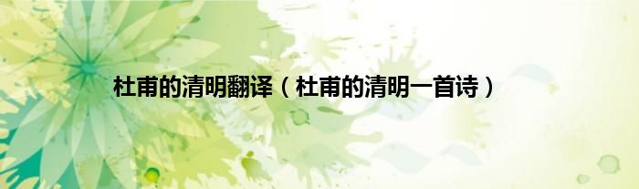 杜甫的清明翻译(杜甫的清明一首诗)