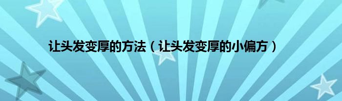 大家好,小问来为大家解答以上问题。让头发变厚的方法,让头发变厚的小偏方这个很多人还不知道,现在让我们一起来看看吧!