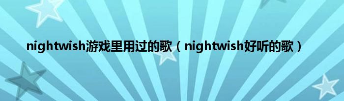 大家好,小问来为大家解答以上问题。nightwish游戏里用过的歌,nightwish好听的歌这个很多人还不知道,现在让我们一起来看看吧!