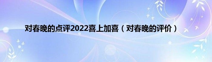 大家好,小问来为大家解答以上问题。对春晚的点评2022喜上加喜,对春晚的评价这个很多人还不知道,现在让我们一起来看看吧!