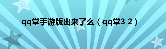 大家好,小问来为大家解答以上问题。qq堂手游版出来了么,qq堂3 2这个很多人还不知道,现在让我们一起来看看吧!