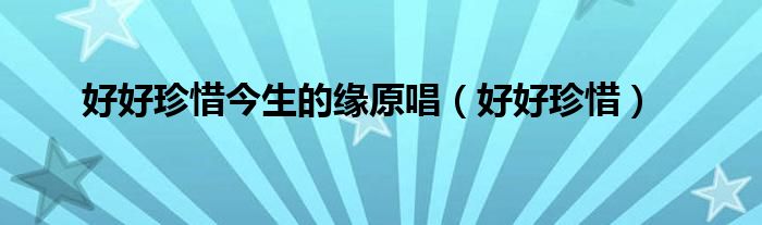 以上就是【好好珍惜今生的缘原唱,好好珍惜】相关内容。