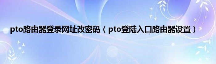 大家好,小问来为大家解答以上问题。pto路由器登录网址改密码,pto登陆入口路由器设置这个很多人还不知道,现在让我们一起来看看吧!