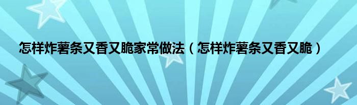 以上就是【怎样炸薯条又香又脆家常做法,怎样炸薯条又香又脆】相关内容。
