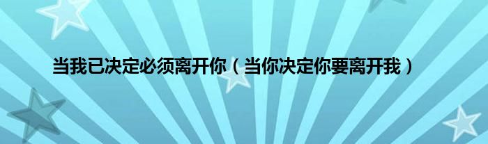 大家好,小问来为大家解答以上问题。当我已决定必须离开你,当你决定你要离开我这个很多人还不知道,现在让我们一起来看看吧!