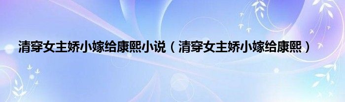 大家好,小问来为大家解答以上问题。清穿女主娇小嫁给康熙小说,清穿女主娇小嫁给康熙这个很多人还不知道,现在让我们一起来看看吧!