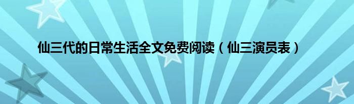 以上就是【仙三代的日常生活全文免费阅读,仙三演员表】相关内容。
