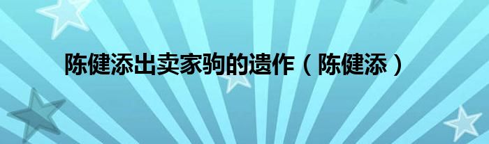 大家好,小问来为大家解答以上问题。陈健添出卖家驹的遗作,陈健添这个很多人还不知道,现在让我们一起来看看吧!