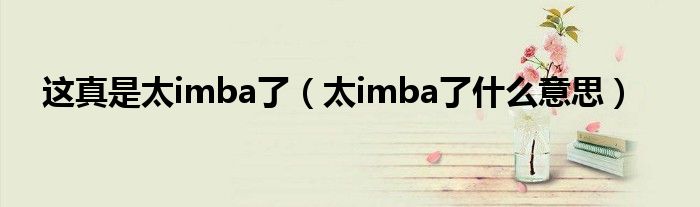 以上就是【这真是太imba了,太imba了什么意思】相关内容。